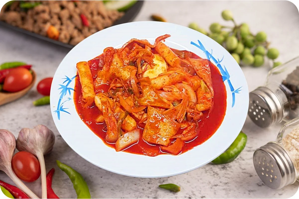 Tteok Bokki, 辣炒年糕, Stir-Fried Spicy Rice Cake.