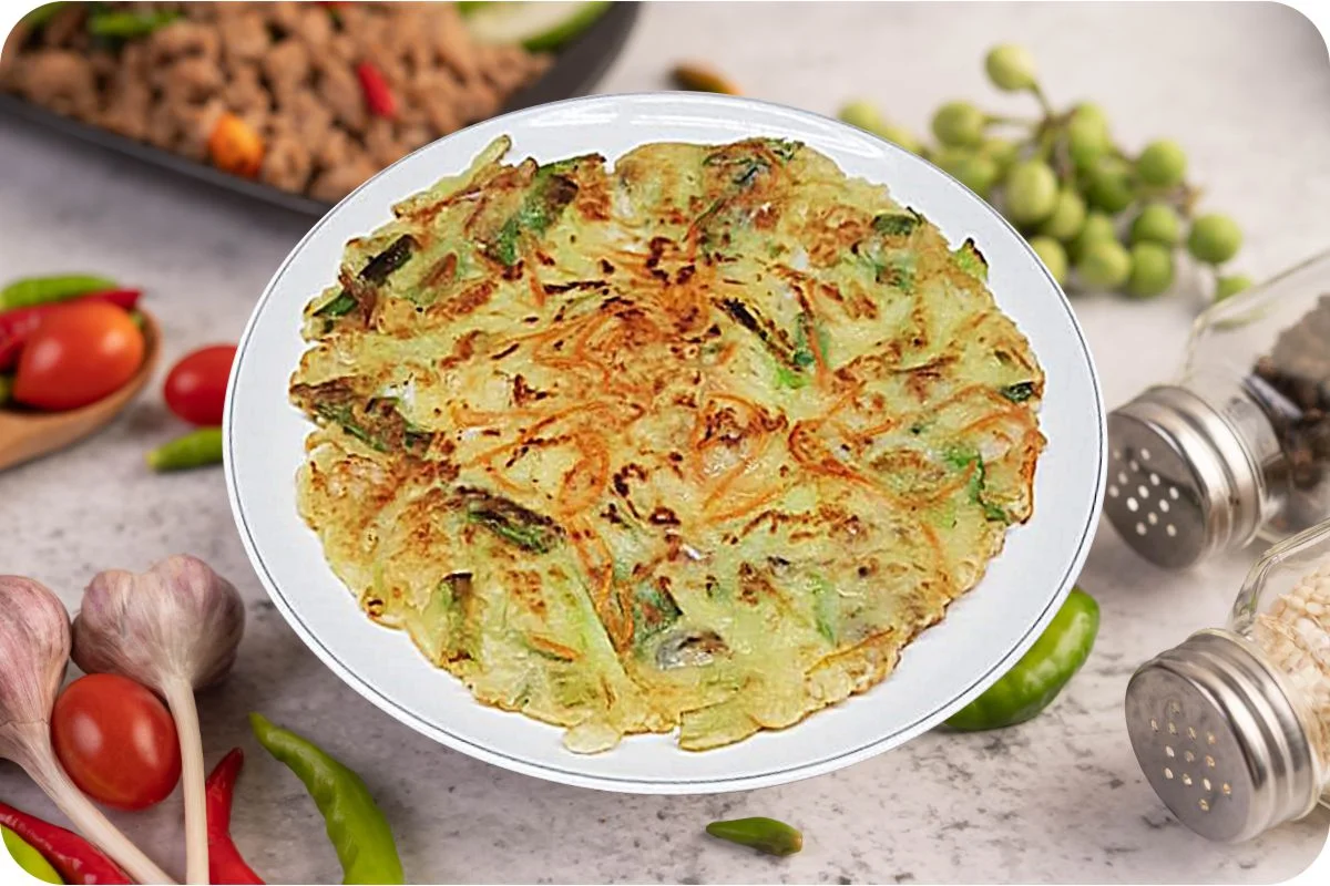 Haemul Pajeon, 海鲜葱煎饼, Seafood and Green Onion Pancake.