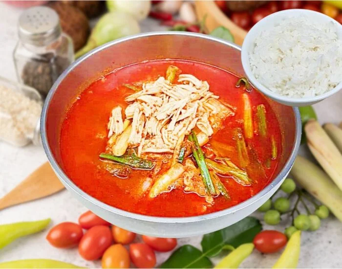 Yukgaejang Bap, 香辣牛肉汤, Spicy Beef Soup with Vegetables and Rice.