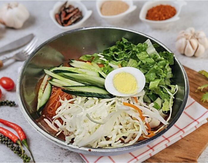 Bibim Guksu, 拌面, Noodles with cucumber, vegetable, egg and Spicy…