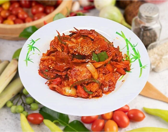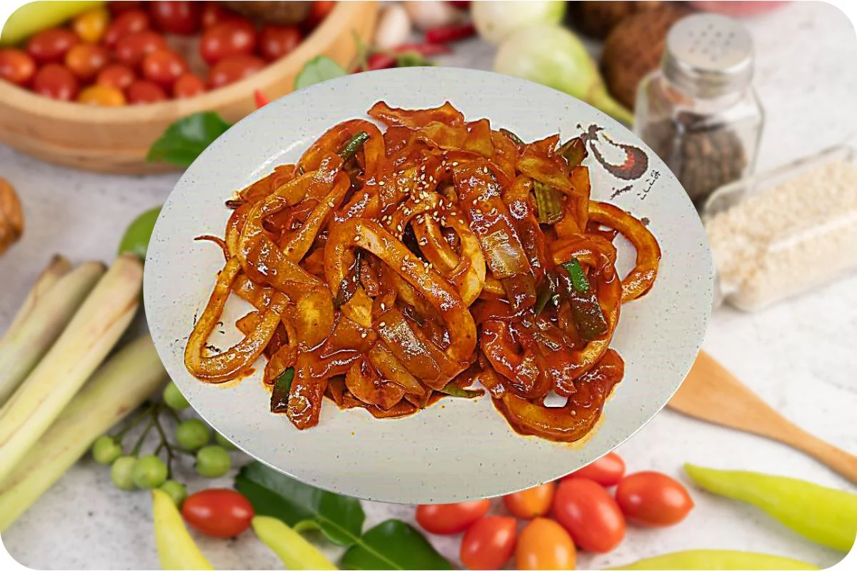 Hanchi Bokkeum, 辣炒鱿鱼, Spicy Stir-fried Squid.